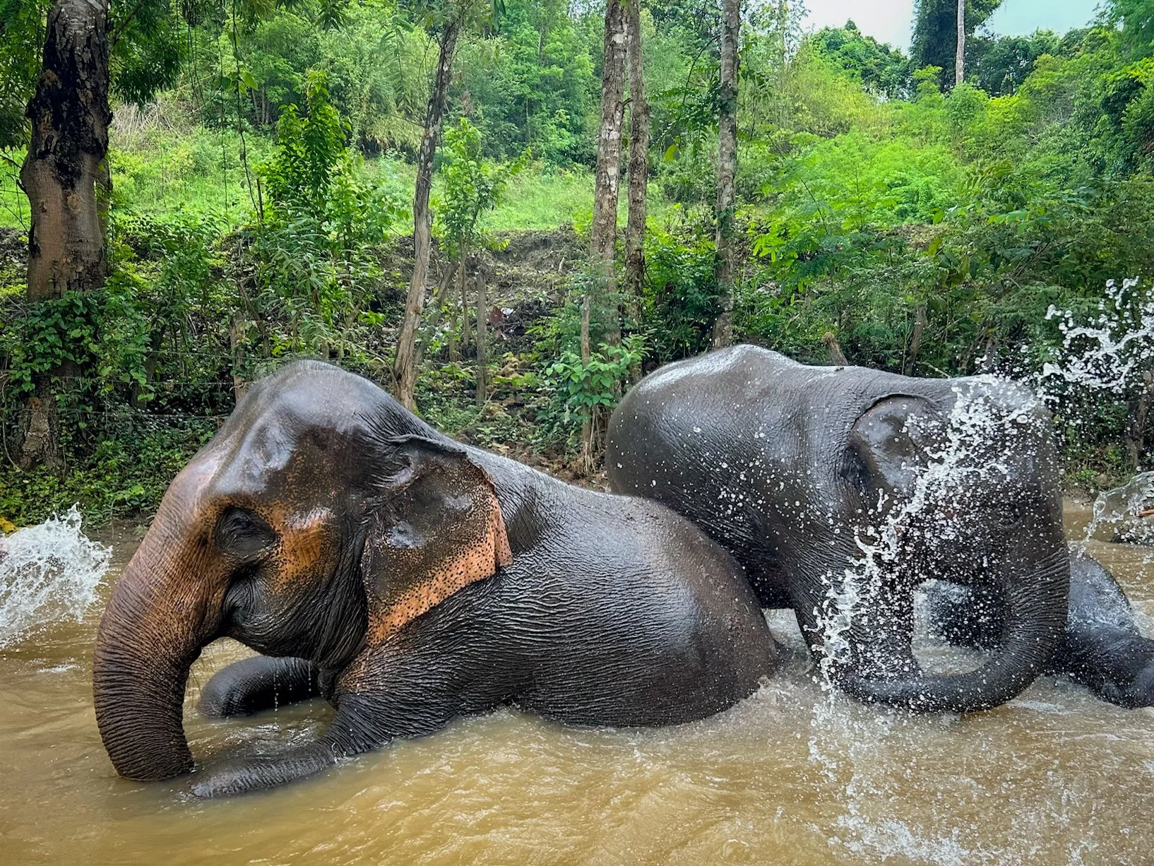 Playful elephants in Northern Thailand